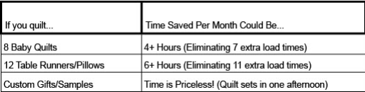 Stop loading four times for four small quilts! It’s time to put your computerized system to work the way it was designed—for maximum, non-stop efficiency.