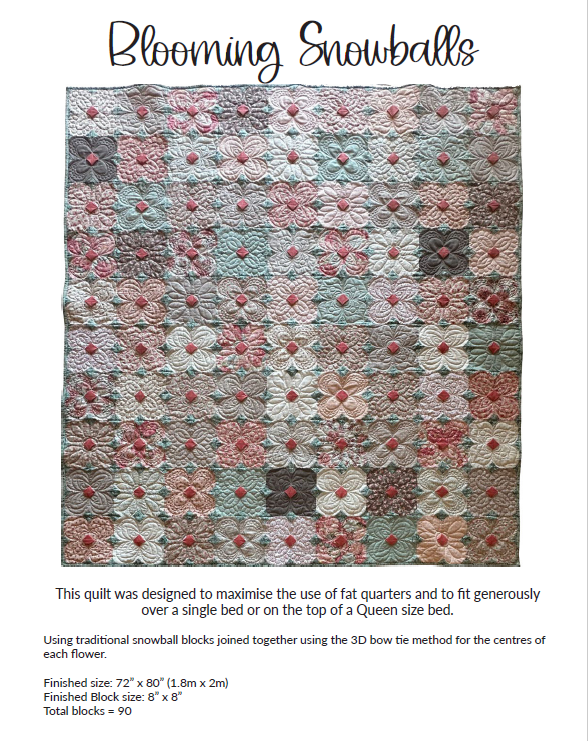 To put your new skills to use immediately, every student receives the complete "Blooming Snowball Quilt" pattern!